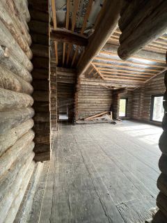 Первый этаж выполнен из сухостойной сосны, привезенной из Карелии компанией ARTKELO.