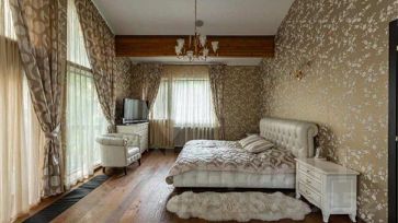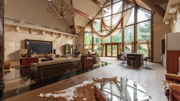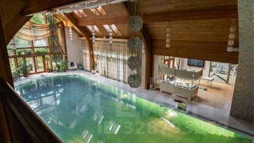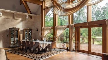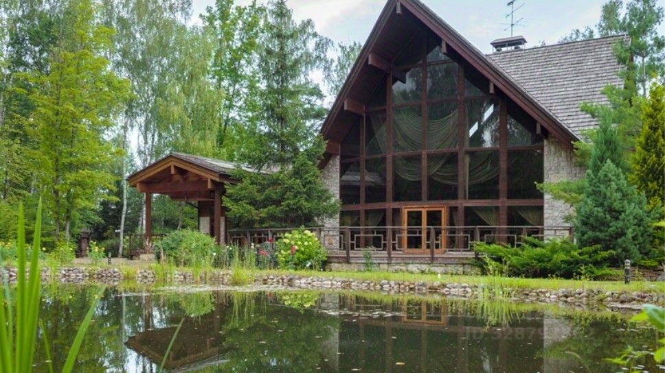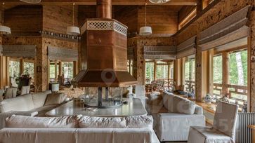 номер объекта: 015920. На продажу предлагается дом на Алтуфьевском шоссе, в 3 км. от МКАД, в коттеджном поселке Вешки-95. Дом кирпичный, общей площадью 1700 м.кв., расположен на участке размером 410 сот. Есть отдельностоящий гараж на 6 м/м. Все коммуникации центральные. Дом готов к проживанию. На первом этаже: просторная гостиная со вторым светом и камином, кинотеатр, винный погреб, 6 спален с собственными ванными и гардеробными и другие необходимые помещения для комфортного проживания, спа: 12-метровый бассейн, просторный хамам, сауна с зоной отдыха и тренажерным залом. На участке: на участке расположен основной дом, площадью 1320 кв. м с закрытой галереей в зону спа и бассейна, также в комплекс входит дом для приемов в русском стиле для проведения банкетов и домашних праздников, дом охраны и персонала с гаражом на 6 автомобилей. Участок резиденции условно разделен на две части: благоустроенная территория с ландшафтным дизайном и каскадом рыбных озер и вторая природный лес с велосипедными дорожками.