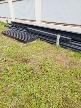 Винтовые сваи вкручены для будущего забора по всему периметру. Забор готов с двух сторон соседей.
