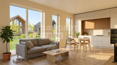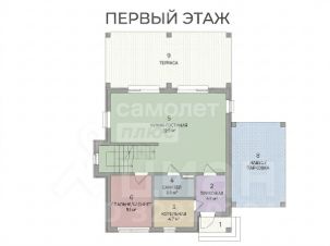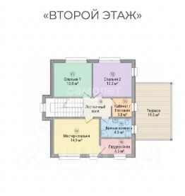 Два полноценных этажа, удобная планировка: просторная кухнягостиная, несколько спален на втором этаже, можно организовать кабинет или детскую.