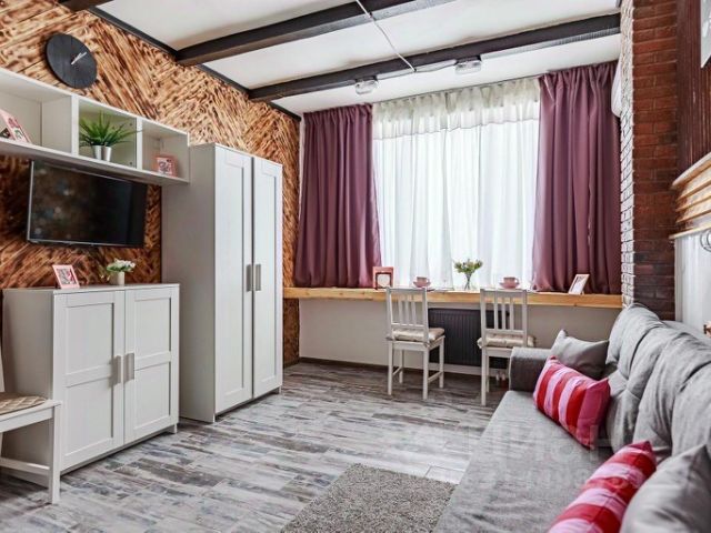 ? Студия полностью оборудована для комфортного проживания: телевизор, бесплатный Wi-Fi, стиральная машина, утюг, фен, варочная панель, чайник и микроволновка. Есть штопор и бокалы. Регулярная уборка профессиональной химией и дезинфекция от насекомых, а также смена белья на чистое и свежее проводятся перед каждым заездом.