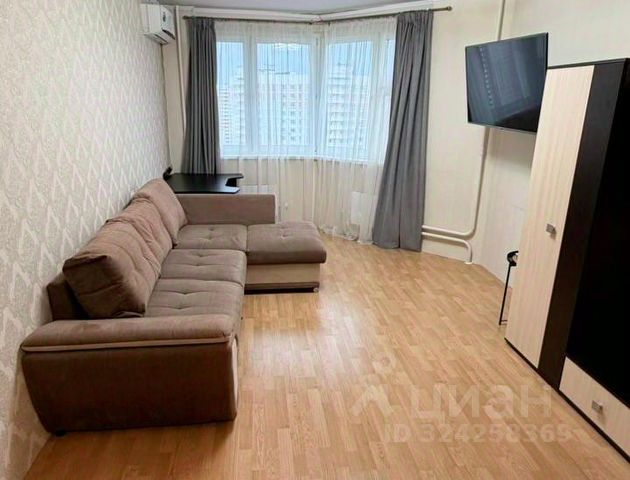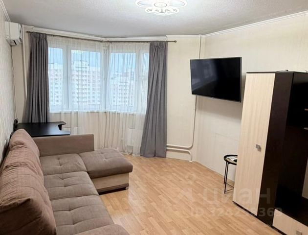 Сдается однокомнатная квартира 6/24 эт. общая площадь - 35 кв. м., комната 14,2 кв.м., кухня 8,7 кв.м., санузел совмещенный - 4 кв.м., гардеробная комната 3,4 кв.м., лоджия 3,2 кв.м.
