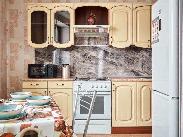 Кухня: собственная (раковина, посуда, электрическая плита, СВЧ-печь, холодильник, стиральная машинка, чайник, вытяжка); Обеденный стол;