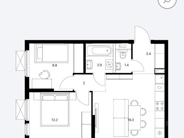 2. продуманная планировка: три изолированные комнаты, позволяющие зонировать пространство под любые нужды (детская, спальня, кабинет или гостиная);