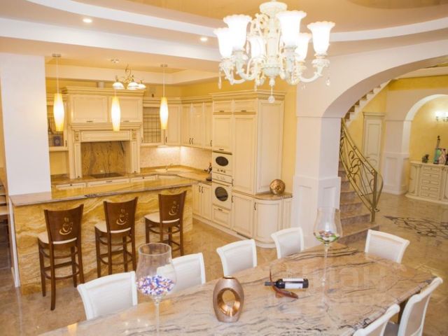 - на 1 этаже: большая кухня-гостиная, мастер-спальня с кроватью king-sizе, бойлерная, тёплый гараж на 2 машины с автоматическими воротами, выход на большую крытую веранду с хорошим видом на ухоженный участок;