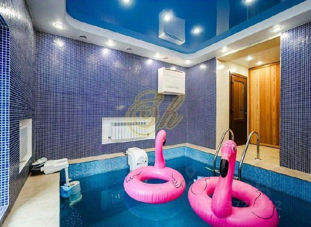 Во 2-м Коттедже спальня полностью меблирована, РУССКАЯ БАНЯ на дровах, теплый крытый БАССЕЙН 8х5 м, зал 20 м²., бильярд, TV, DVD, караоке профессиональное оборудование. На участке, расположены: ОТКРЫТЫЙ БАССЕЙН 15х10 м, зимой КАТОК и ПРОРУБЬ, большая крытая веранда с ШАТРОМ 9х10м, беседка - крытая на пруду, теннисный стол, мангал, зона барбекю, зона отдыха, стоянка на 8 машин. Коттедж предназначен на 25-30 спальных мест.