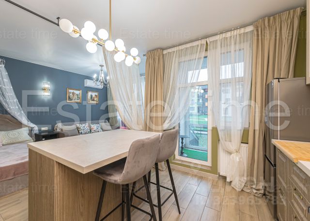 ЖК "Клубный дом Малые Вешки". Сдается квартира студия с только что выполненной отделкой и абсолютно новой мебелью. Установлен кондиционер. В квартире: кухонный гарнитур со встроенным холодильником, СВЧ, посудомоечной машиной, духовым Обеденная группа с тремя мягкими стульями, стол раскладывается. Диван Аскона с ортопедическим матрасом, раскладывается вперед в ровное полотно. Шторы блэкаут. Продуманные системы хранения: в комнате вместительные шкафы с тумбой под ТВ. В прихожей также двустворчатый зеркальный шкаф. В санузле установлена ванная, стиральная машина, навесной шкаф с зеркалом с подсветкой. Клубный дом располагается в поселке Вешки, в окружении малоэтажного сектора (коттеджи, закрытые КП). Дом четырехэтажный, есть грузопассажирский лифт. У дома просторная наземная парковка. В центре поселка: ТЦ с магазинами, аптекой, спортклубом, рестораном. Рядом благоустроенный парк Ближняя Дача с прудом и рестораном. До МКАДа 3 км по Алтуфьевскому шоссе. Также от дома курсируют маршруты до метро Алтуфьево.