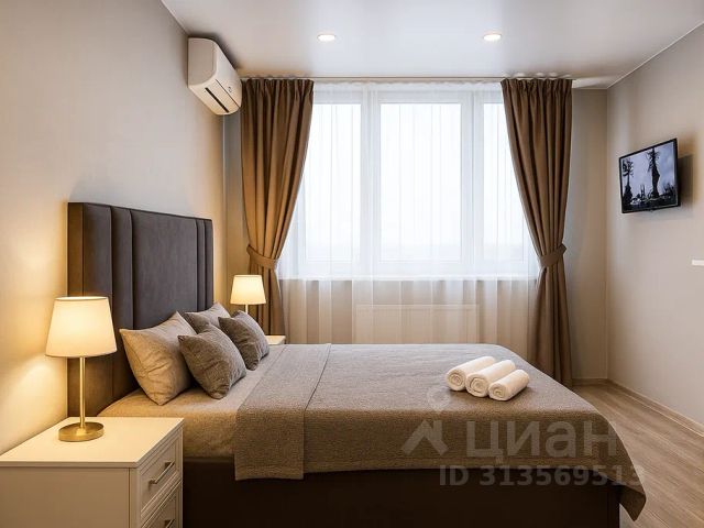 Работает тeлeвизoр Smart и бесплатный wi-fi. Есть кондиционер. Панорамные окна. Шторы Блэк-аут, видео домофон
