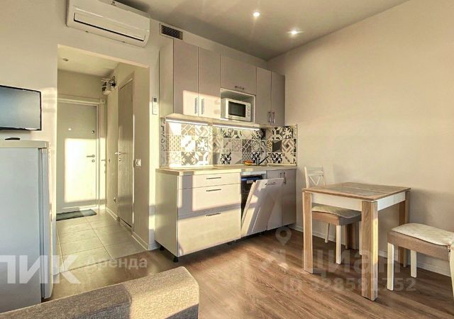 - Кондиционер, кухонный гарнитур, бытовая техника: варочная панель, холодильник, микроволновая печь, стиральная машина, чайник, мини-утюг, подключен Wi-Fi.