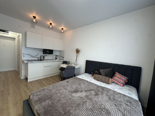 Сдаётся на длительный срок светлая, просторная студия в ЖК Квартал "9/18". Предпочтительно для семейной пары! Огромная просьба: риелторов и посредников не беспокоить меня Огороженная охраняемая территория. Современный жилой комплекс с подземным паркингом евро уровня. Детский сад построен в комплексе с жилыми корпусами. На территории комплекса расположена академическая гимназия для детей дошкольного возраста, фитнес-клуб "Зебра", бассейн. Панорамные окна, в квартире кухня-гостиная студийного типа, спальное место огорожено, гардеробная комната, совмещенный санузел с ванной. Балкон. Квартира обустроена всем необходимым для проживания Холодильник Микроволновка Телевизор Кондиционер Стиральная машина Интернет + тв (более 100 каналов!) Техника в рабочем состоянии! Соседи молодые семьи. Дом новый, 2016 года заселения. Двор тихий и спокойный, без автомобильного движения. Парковочные места по периметру двора. Есть подземная парковка (сдаются машиноместа в аренду не у меня) Стоимость аренды 47000 руб ежемесячно. + Депозит 50000 руб! Отдельно оплачиваются коммунальные расходы по счётчикам (ХВС, ГВС, водоотведение, отопление и электричество) + интернет.