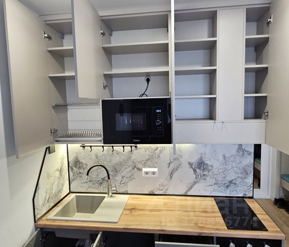 - Кондиционер, кухонный гарнитур, бытовая техника: варочная панель, холодильник, микроволновая печь, стиральная машина, чайник, мини-утюг, подключен Wi-Fi.