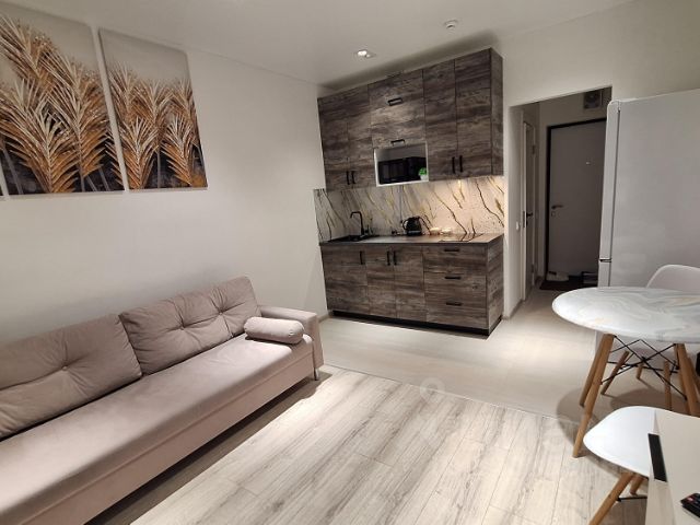 Кухня: вместительные шкафы, высокие верхние полки, фурнитура с доводчиками, вместительная встроенная мойка, удобный смеситель с возможностью подключения проточного аквафильтра, каменная столешница с подсветкой, много розеток. Из техники на кухне варочная панель индукционная, духовой шкаф электрический, полноразмерная посудомоечная машина, микроволновая печь, вместительный двухметровый холодильник, мощная встроенная вытяжка, ТВ плазма, много розеток. Обеденный стол 120х80 см, раздвижной (до 160х80), комфортные стулья. Пол с электрическим подогревом. Штора тюль, карниз с возможностью навешивания второй шторы блэкаут. Освещение комфортное и стильное.