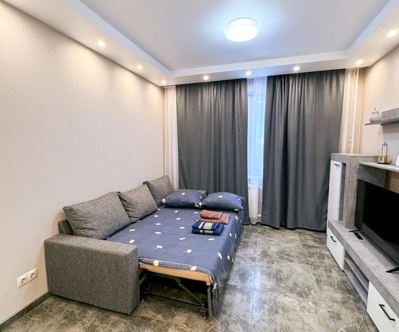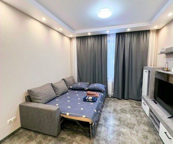 Уютная студия в стиле Loft с новым ремонтом в новом доме, для отдыха, кухня с посудой, санузел совмещен, всегда есть горячая вода душ, туалетные принадлежности, белоснежные махровые полотенца и постельное бельё.